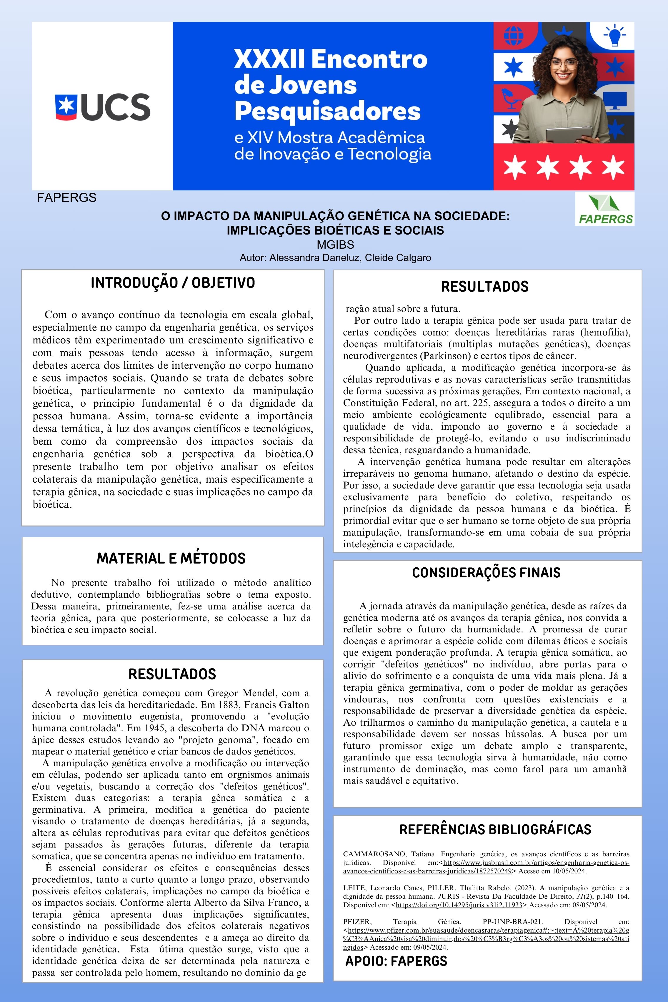 Conclui-se que a trajetória através da manipulação genética, desde as raízes da genética moderna até os avanços da terapia gênica, apresenta questões éticas e sociais pertinentes. Ainda que prometa curar doenças e aprimorar a espécie, essa tecnologia confronta os dilemas sobre responsabilidade e preservação da diversidade genética. Dessarte, é essencial agir com cautela e responsabilidade, desenvolvendo um debate amplo e claro para assegurar que a manipulação genética beneficie a humanidade de forma igualitária e saudável.